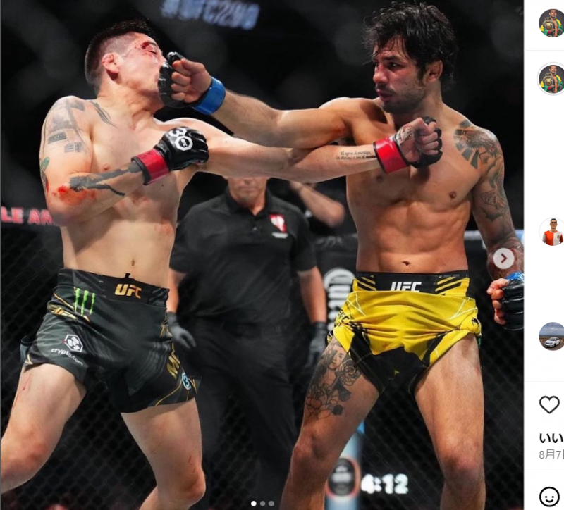 パントージャの強打(23年7月=ブランドン・モレノ戦、@pantoja_oficial)