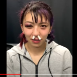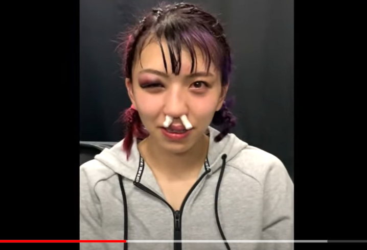 ルシアの打撃で鼻栓姿のぱんちゃん(『ぱんチャンネル_ぱんちゃん璃奈』)