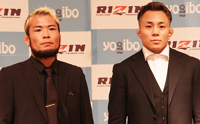 対戦が決定した新居すぐる(右)と武田光司(左)