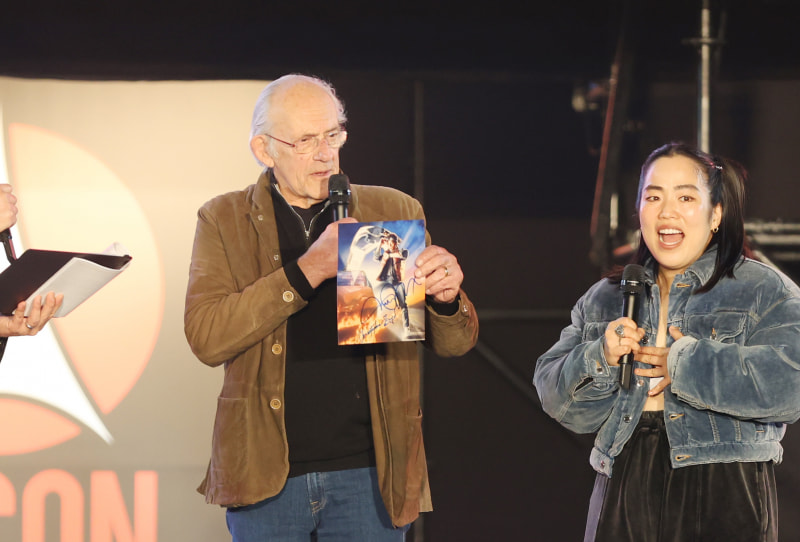 ロイドのサイン入り『バック・トゥ・ザ・フューチャー』のミニポスターを貰うゆりやん
