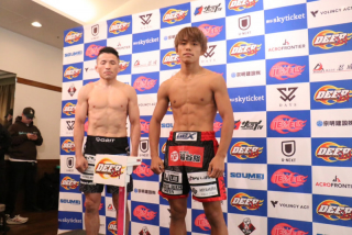 12月8日(日)東京・ニューピアホールで開催される『DEEP 123 IMPACT』の前日計量が7日に都内で行われ、メインイベント(第9試合)で対戦する現DEEPフェザー級王者・青井人(BLOWS)は66.20kg、元同級王者・芦田崇宏(BRAVE)は66.30kgで計量パスした(タイトルマッチおよびキャッチウェイト以外の階級制の試合は0.5kgの許容重量が認められる)。