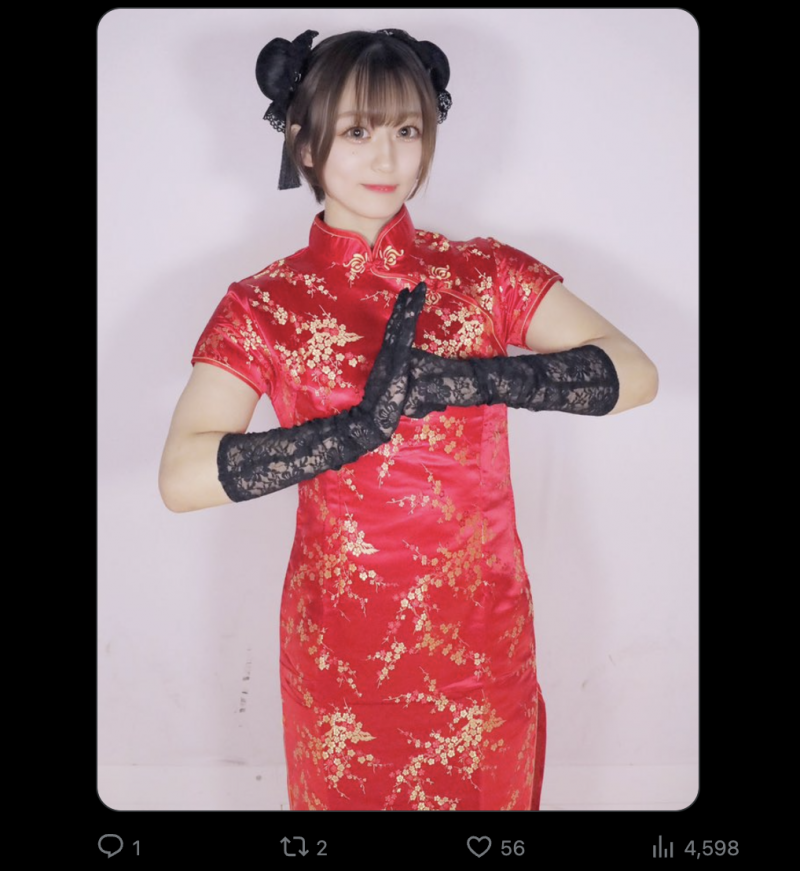 チャイナ服の藤城心、今年10月公開(@kottaaan556)
