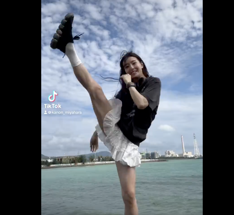 沖縄のビーチで鍛えた生脚ハイキック!(宮原のTikTokより)