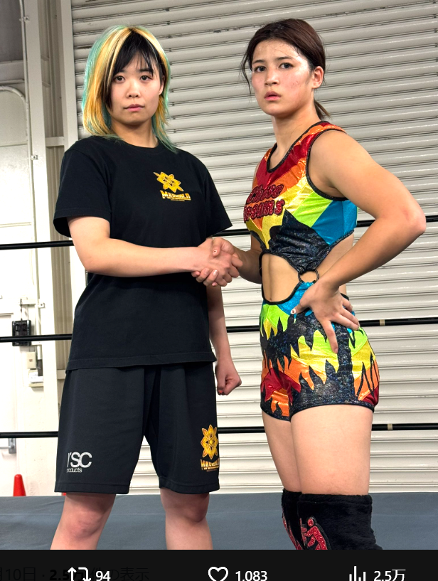 デビュー戦の対戦相手のMIRAIと握手(@DSF_Marigold)