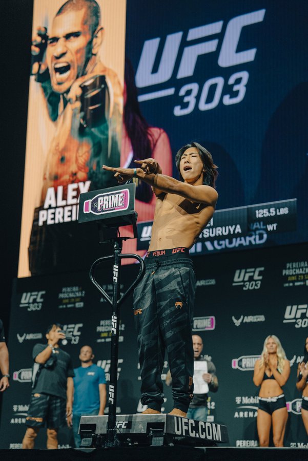 計量でWWE中邑真輔のポーズを決める鶴屋©️UFC