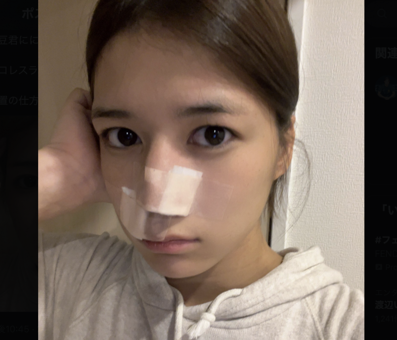 ガーゼを貼る姿(@yamaoka.seri.1113)