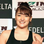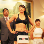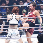 前戦7月、RENAがケイトを左足の蹴りで攻める