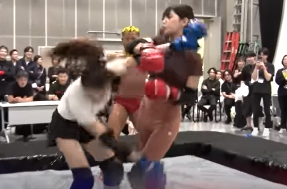 BDオーディションで行われたローションMMA対決で小島(右)は強烈なパンチ(『朝倉未来YouTubeチャンネル』)