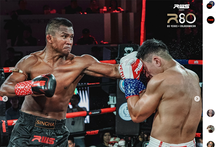 ウェンバオとの激闘を制したブアカーオ(左)@rwsmuaythaiより