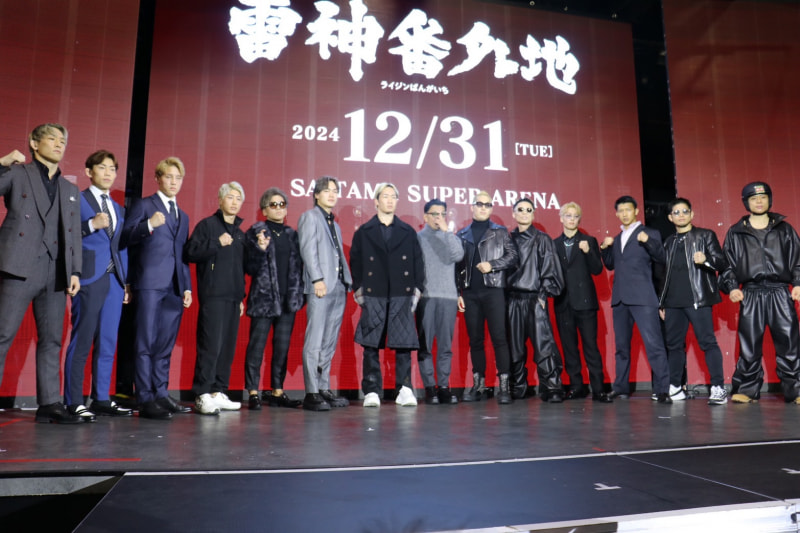 本日会見に参加した選手たち、朝倉、RIZIN榊原CEO