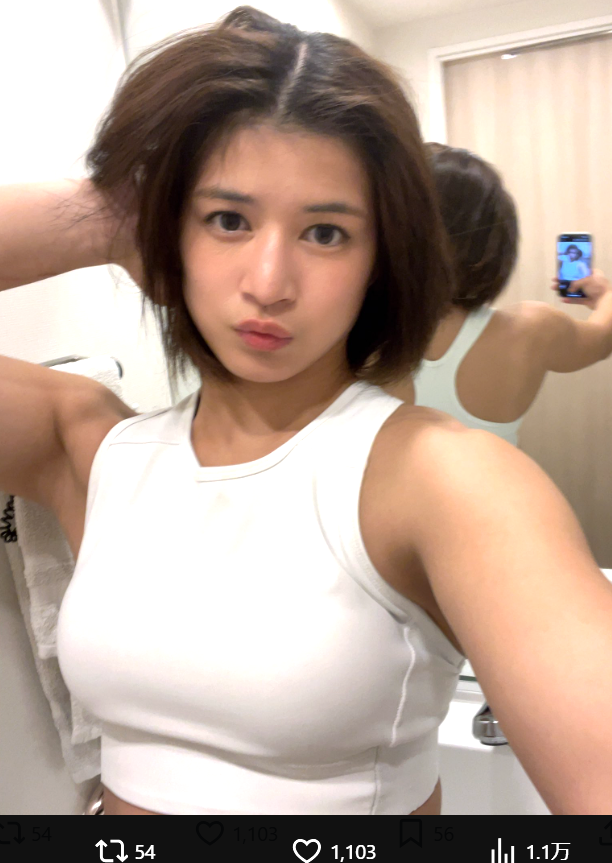 白いブラトップで自撮りしたマッスルボディ(@y_seri_1113)