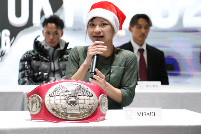 会見でもサンタ帽を被り笑顔のMISAKI