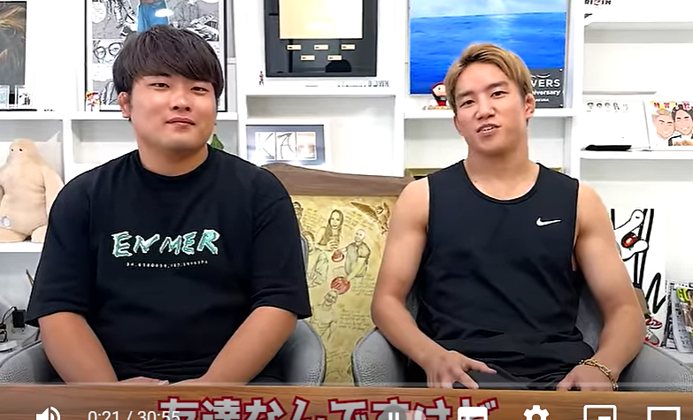 朝倉海(右)は、専属カメラマンの横川君(左)のダイエット企画を動画で配信(『 KAI Channel / 朝倉海』)