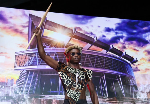 ズールーはヒョウ皮の衣装に槍を持って計量パス