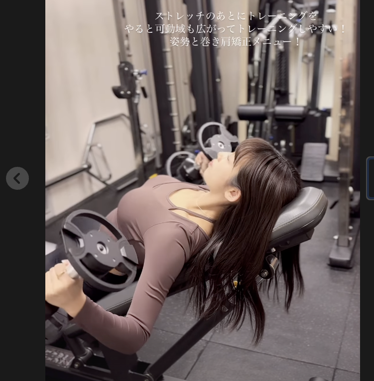 ダンベルフライで胸トレする堀江(@mina_horie)