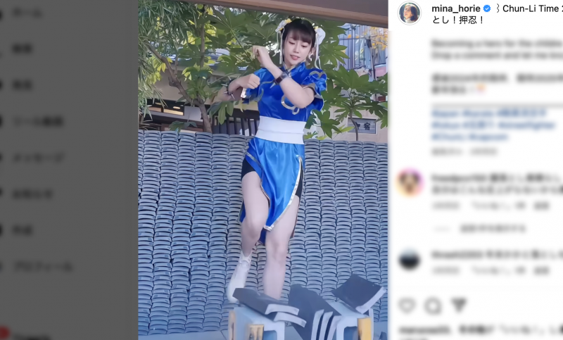 堀江が初の春麗コスでかかと落とし!瓦12枚の新記録