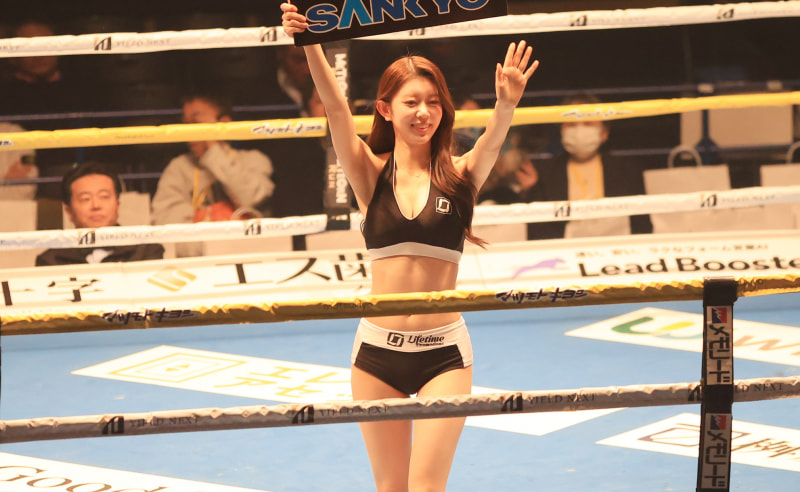 宇佐美と共に上原沙弓理がラウンドガールを務めた