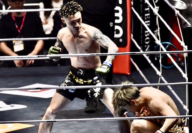 篠塚はほぼ左のみを使いKO勝利