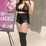 勝ったパラス(右)は大はしゃぎ、ラウンドガールSAORIに抱きつく