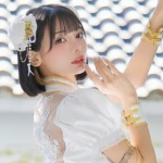 ラウンドガール衣装で天井に手を伸ばす米倉(@0630_miyu_より)