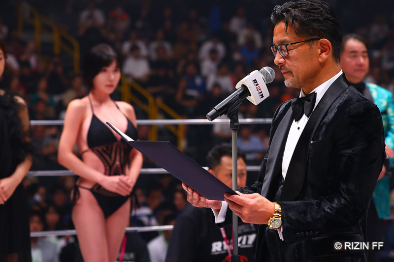 際どい黒水着姿でリングに現れた深田えいみ(左)