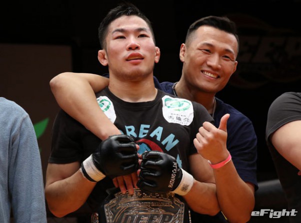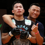 ジンスが戴冠 師匠のコリアンゾンビ(後ろ)も笑顔