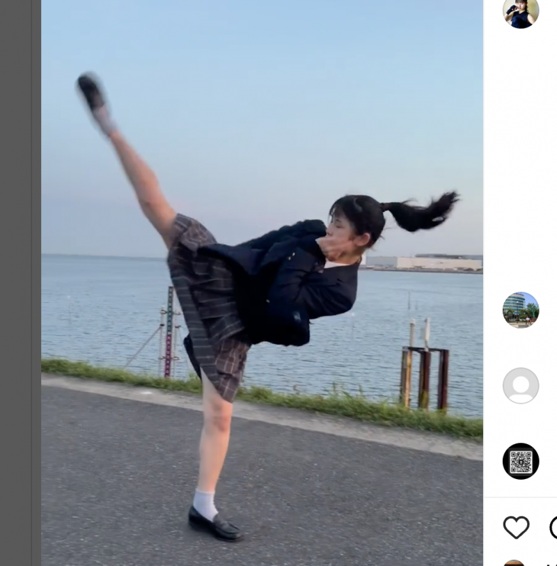 辻井和花、学生服でっハイキック(@hoonoka2142)より
