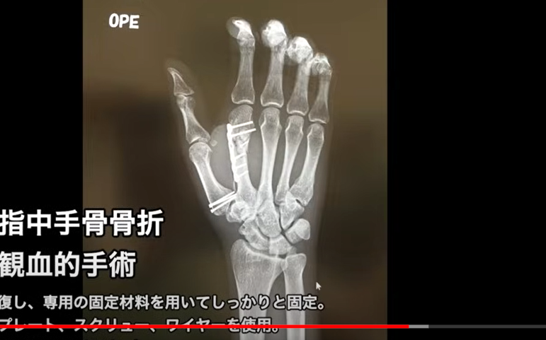黒石が右手骨折し手術直後のレントゲン写真を公開(『黒石高大』YouTubeチャンネル)