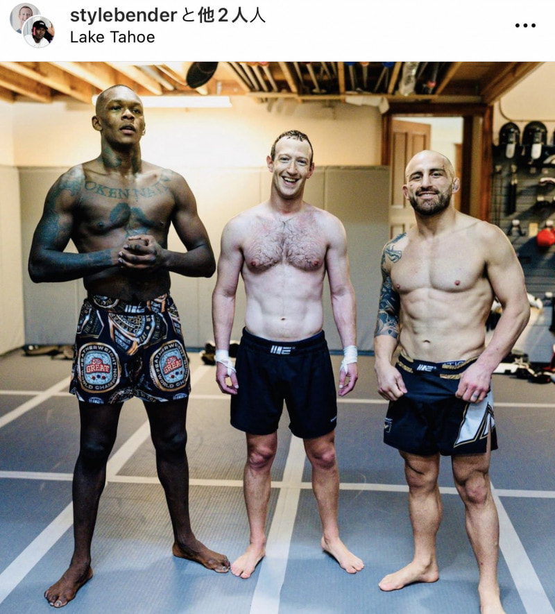 アデサンヤ(左)、ヴォルカノフスキー(右)と練習するザッカーバーグ@stylebender