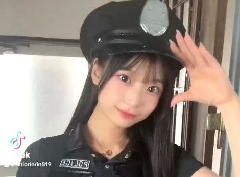 17歳のJKラウンドガールの百田汐里が、ポリス姿で美腹筋を見せた(@shiori819)