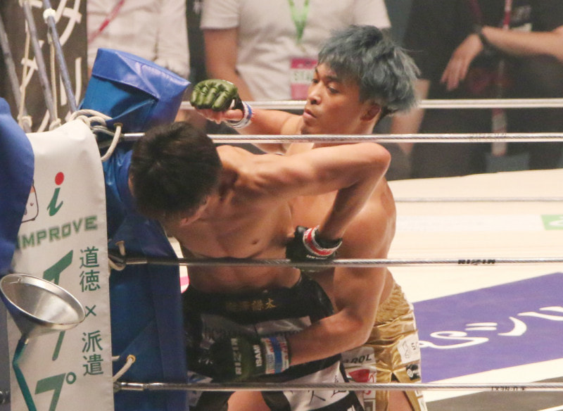五輪レスラー太田忍(右)がパンチ連打でTKO勝ち(23年7月、瀧澤謙太戦)