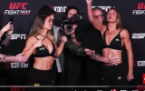 【UFC】柔術女子ダーン、割れた腹筋ボディで計量パス!因縁ヒバスと12秒間の睨み合い=1.12
