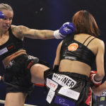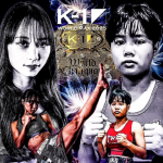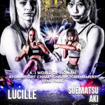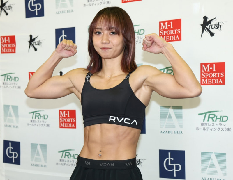 24年11月、松谷綺が計量でマッスルポーズ(C)K-1