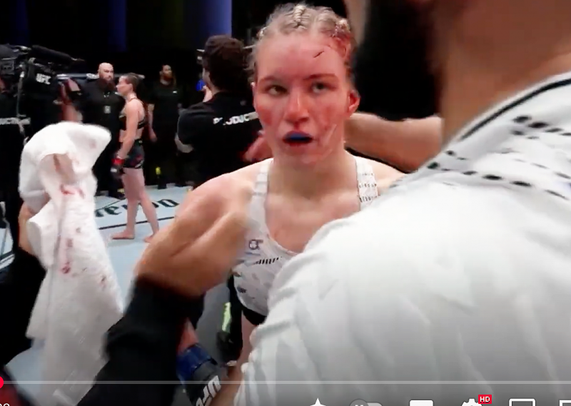 顔面流血のKO負け女子選手、駆け寄ったセコンドにまさかのビンタ!@UFC