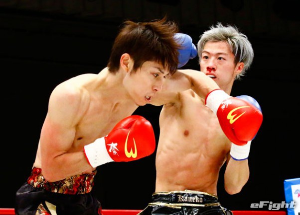 2017年11月のKrushでは、後にK-1王者となる金子晃大(右)と対戦経験のある出貝泰佑(左)