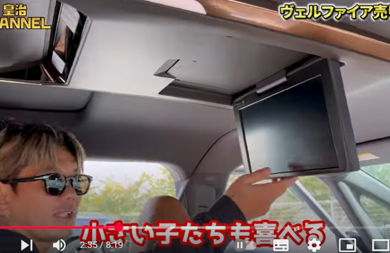 後部座席はモニターも(『皇治チャンネル』)