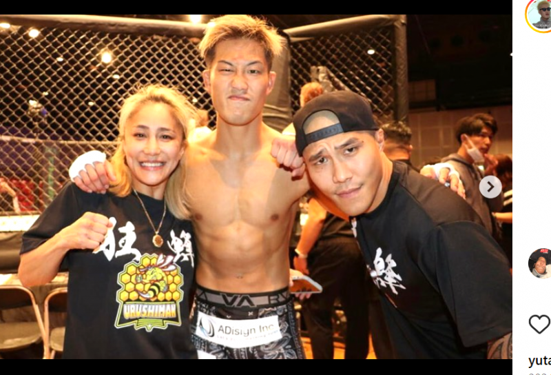 KRAZYBEEに所属していたウルシマン(中央)、右は山本アーセン、左は山本美憂(@urushiman10nin)