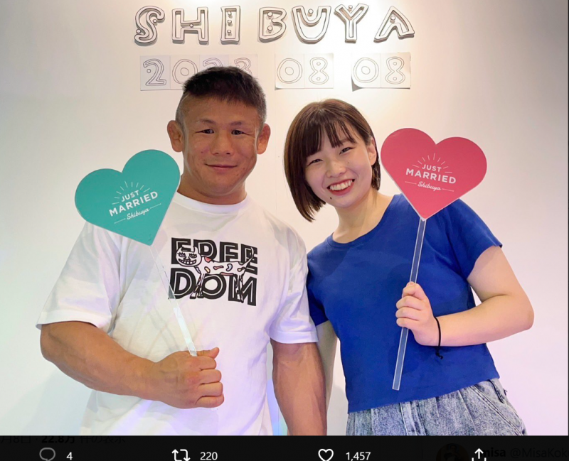 笑顔で幸せ絶頂の2人(@lotuskitaoka)