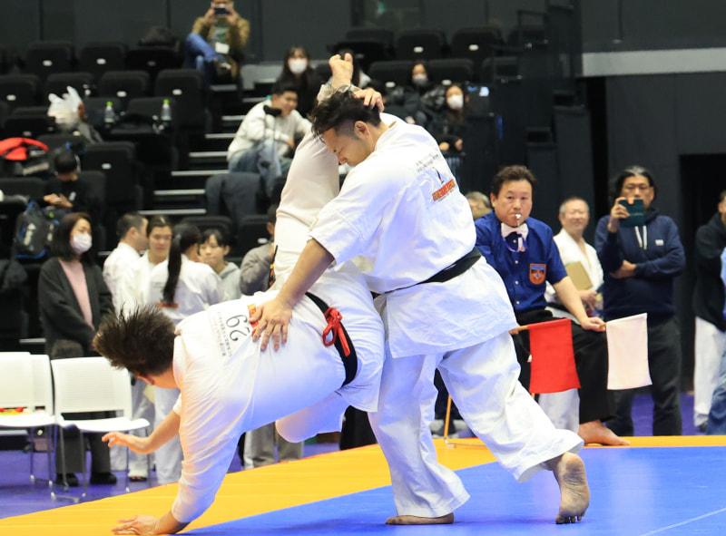 決勝で胴回転回し蹴りを放つ芦髙