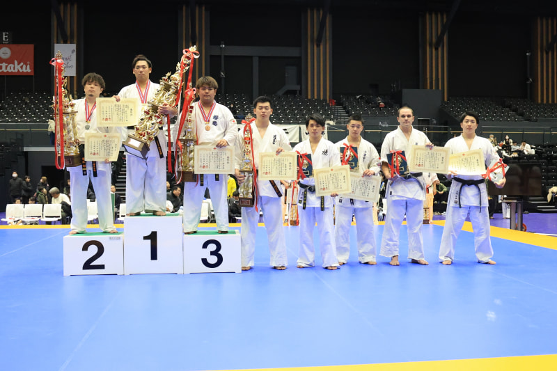 左から重松翔、芦髙侑平、早川羅偉、後藤優太、宮川渉、大場孔揮、、クラべ・エスラ、大内巨成