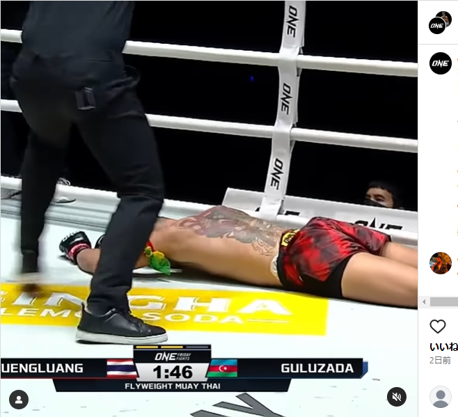 相手はうつ伏せに倒れ失神@onechampionshipより