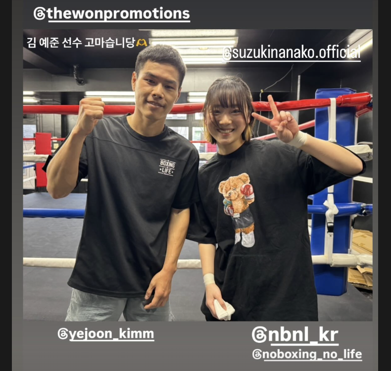 キムと美女ボクサー鈴木なな子と2ショット@yejoon_kimm