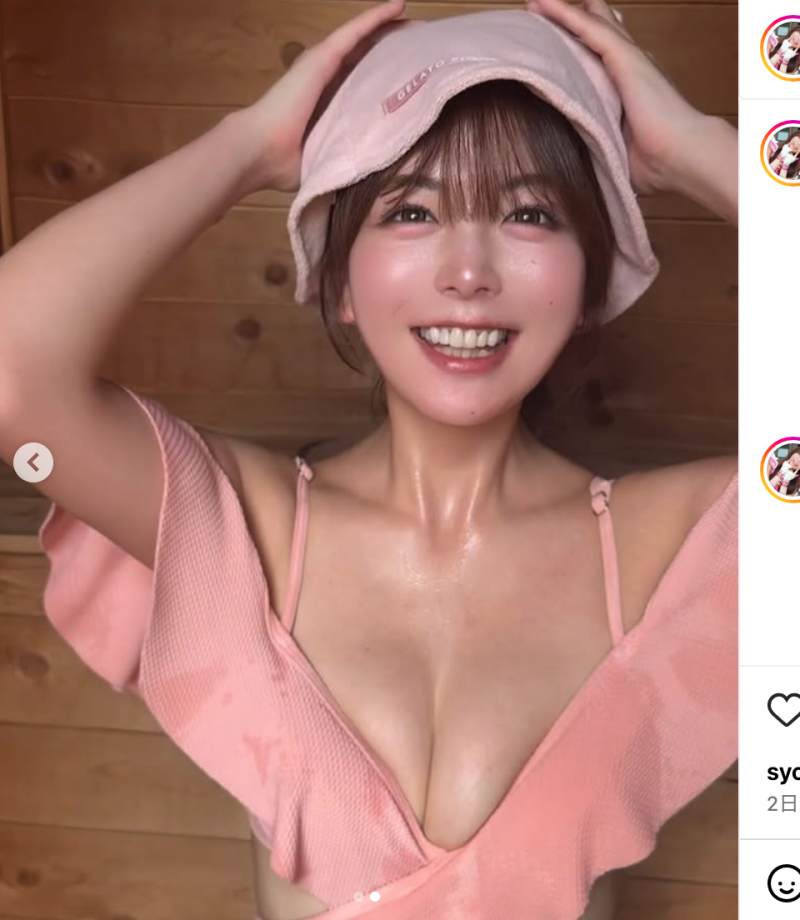 胸元ぷっくりなピンク水着でサウナに@kotone_dayo___ より