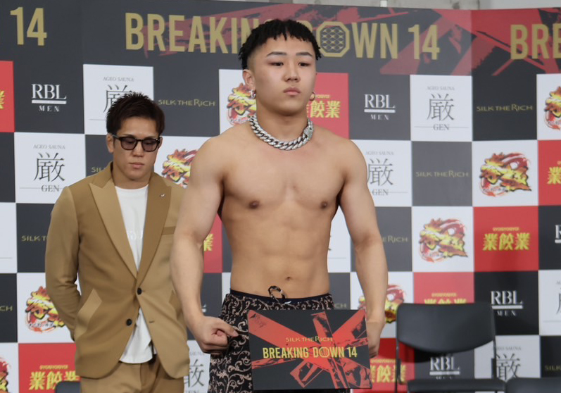 昨年12月、こめお戦計量時のレオのマッスルボディ(@reo_34564)