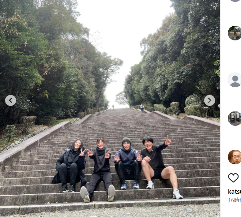 階段トレをした角田(左から2番目、@tsunoda_natsumi)