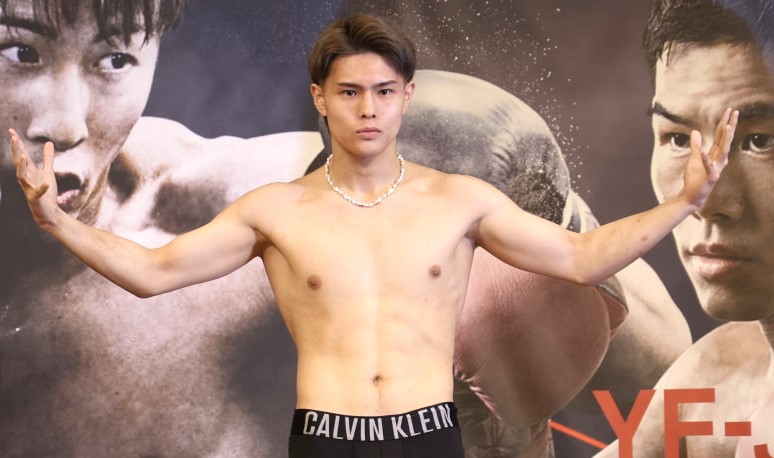 佐々木が両手を広げて計量パス