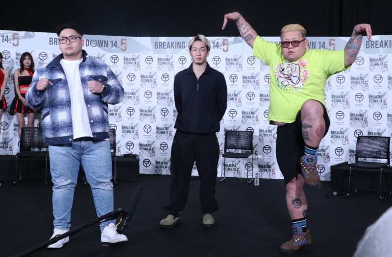 相撲取りの坂前(左)と大宮喧嘩自慢のぶーちん(右)