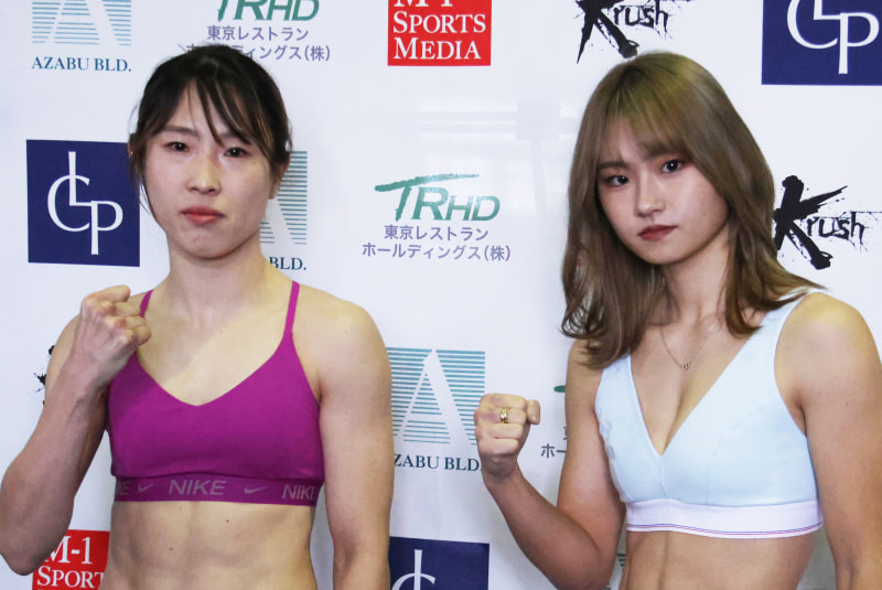 高梨knuckle美穂(左)とMOEが計量をパスした