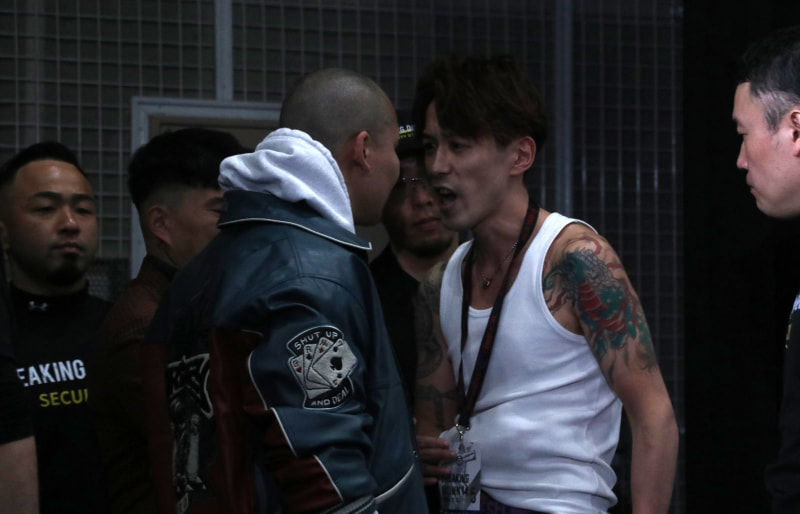 ダイスケ(左)とイエスは最後までもめていた(前日会見)