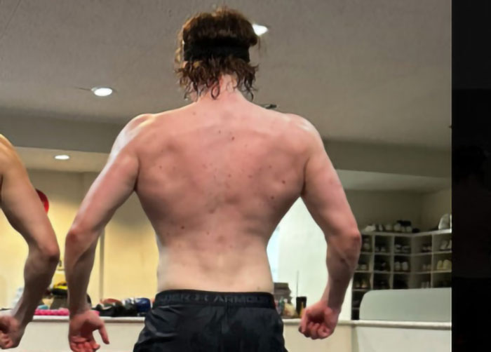 逆三角形の背中と背筋(@anpo_rukiyaより)